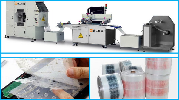全自動絲印機廣泛應用于PET、PVC 、PC、無紡布、地暖膜、電熱膜、轉印膜、花紙、柔性線路板、薄膜開關、商標鐳射、銘牌、不干膠標貼等卷裝材料的絲網印刷.銅箔電路板二次印刷采用CCD視覺定位系統,印刷精度高達3-5絲左右,更適合各行業的要求標準.