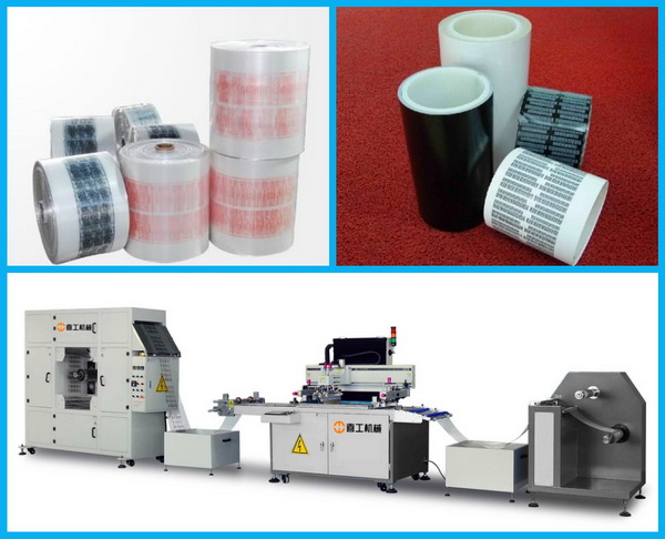 該機廣泛用于PET、PVC 、轉印紙(膜)、地暖膜、地熱膜、電熱膜、花紙、薄膜、銘板、柔性線路板、手機按鍵、3M膠、膠水、薄膜開關、商標鐳射、刮刮卡、不干膠標貼、桶裝紙、織帶、鋁箔、銅箔等卷筒材料的絲網(wǎng)印刷。