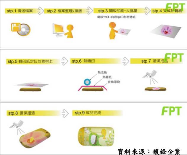 轉(zhuǎn)印加工通過熱轉(zhuǎn)印機一次加工(加熱加壓)將轉(zhuǎn)印膜上精美的圖案轉(zhuǎn)印在產(chǎn)品表面,成型后油墨層與產(chǎn)品表面溶為一體,逼真漂亮,大大提高產(chǎn)品的檔次。但由于該工藝技術(shù)含量較高,許多材料均需進口。